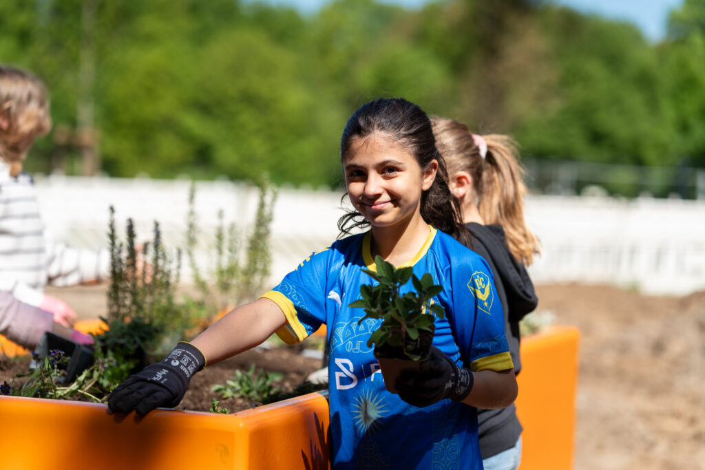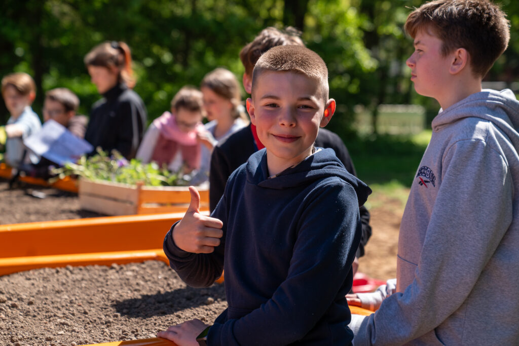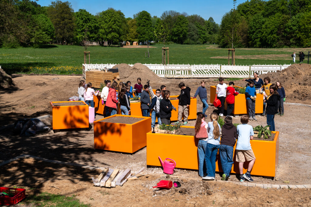 Am 23. April haben Schüler*innen der Sekundarschule am Biegerpark und des Mannesmann-Gymnasiums die neuen Hochbeete im Gemeinschaftsgarten im Biegerpark bepflanzt.