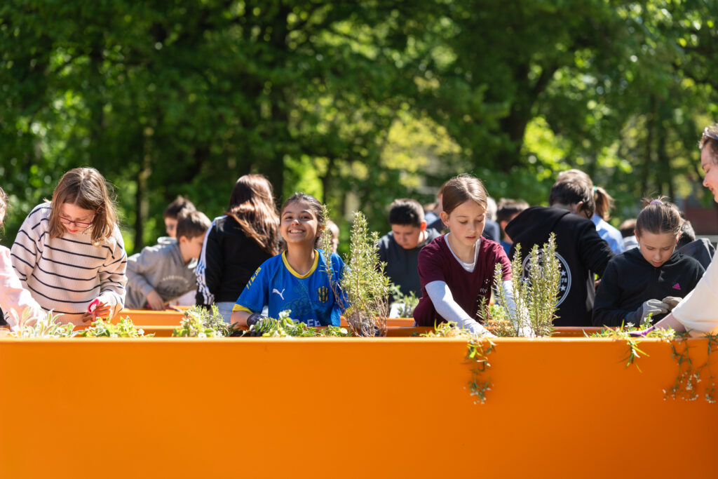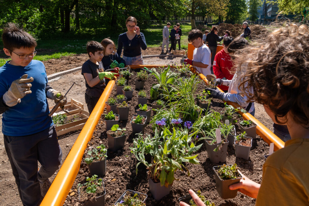 Welche Pflanzen künftig in den Hochbeeten wachsen sollen, hatten die Kinder zuvor in einem Pflanzworkshop gemeinsam mit den Urbanisten und der Umweltexpertin Mandy Schreiber selbst entschieden. Besonderes Augenmerk lag auf biodiversitätsfördernden Pflanzen, die Bienen, Schmetterlingen und anderen Insekten als Nahrungsquelle dienen. Ein Bericht dazu ist hier zu finden.